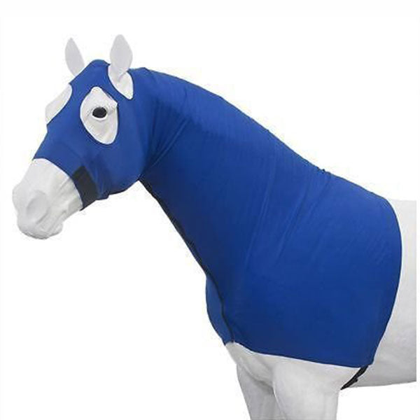 Designed for easy on and off, this Centaur® Lycra® Hood with Zipper stretches to fit securely, snugly and comfortably. Useful for protecting braids or serving as a base layer, this stretch horse hood closes easily with a full zipper and has an adjustable surcingle for added security and comfort.