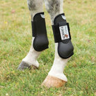 These horse boots feature hard, yet lightweight, TPE thermal molded plastic outer shells for protection. Easy-care neoprene linings help prevent slipping and are easy to hose clean. Double hook-and-loop fasteners.