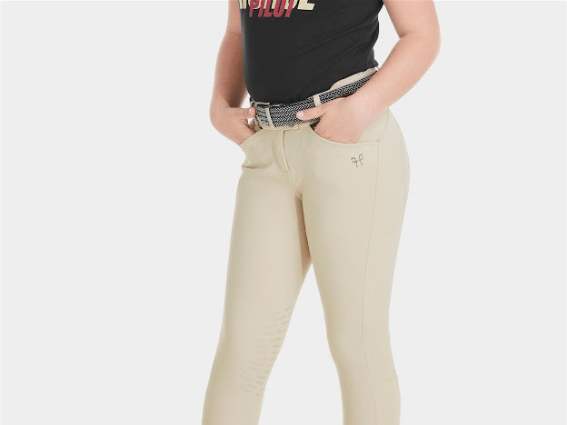 Made of a highly breathable, 4-way stretch material, the trousers adapt to the body position of the young rider. There are no seams on the inside of the leg to avoid chafing. Very functional, it has all the necessary elements for riding: safety snap, hand pocket and silicone grip on the inside of the knees. The elastic waist adapts to all body types. These trousers are available in white for competitions and beige for hunters.